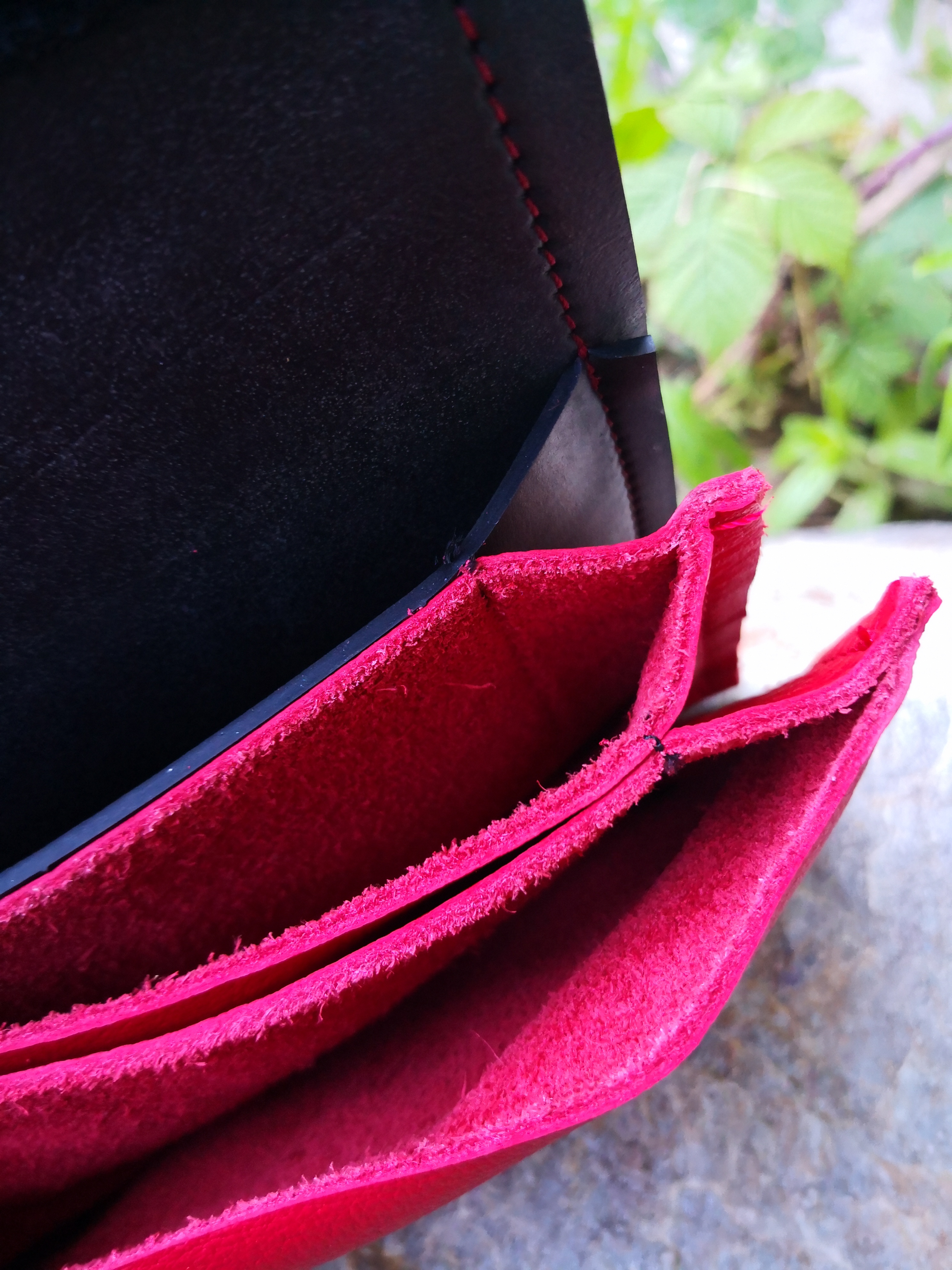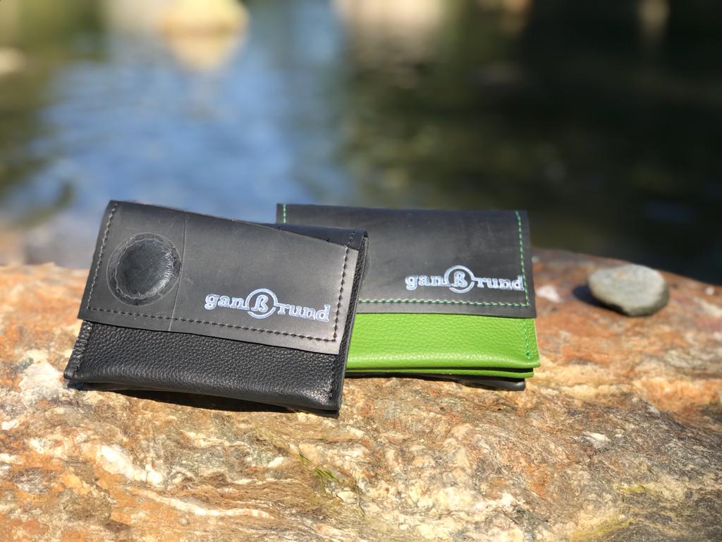 Die Geldbörse ist aus einer Materialkombination von Gummi und Leder gefertigt, die gut miteinander harmoniert. Sie liegt geschmeidig in der Hand und jede ist ein einzigartiges Unikat. Je nach Größe sind ein oder zwei Kartenfächer in der Mitte.