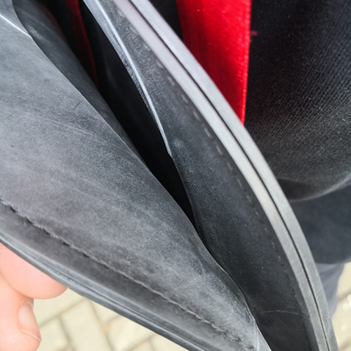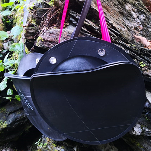Die Tasche ist aus Gummi gefertigt und hat ein integriertes Schlüsselband. Der Schultergurt ist in verschiedenen Farben erhältlich und kann mühelos ausgetauscht werden. Er ist in der Länge leicht verstellbar.